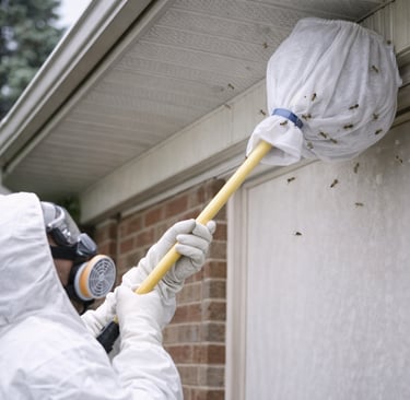 Safe removal of wasp and hornet nests from roofs, trees, and structures with protective equipment and prevention.